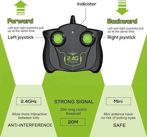 Amazing Stunt Design: Experience the thrill of incredible stunts with the VAZILLIO stunt car! It can perform forward, backward, left, and right turns, as well as impressive 180 flips and 360 rotations. Pushing the 2 joysticks toward opposite directions results in a fast rotating motion resembling an inverted cone of light. With a maximum speed of 9mph, the excitement never ends.